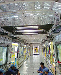在側壁和頂棚的應用事例中,Greencos綠寰宇多型號吸聲隔熱泡綿板的低熱能傳導性顯示出高效隔熱的性能。例如,空調(diào)載客車的運行費用因此可以得到很大程度的降低。
